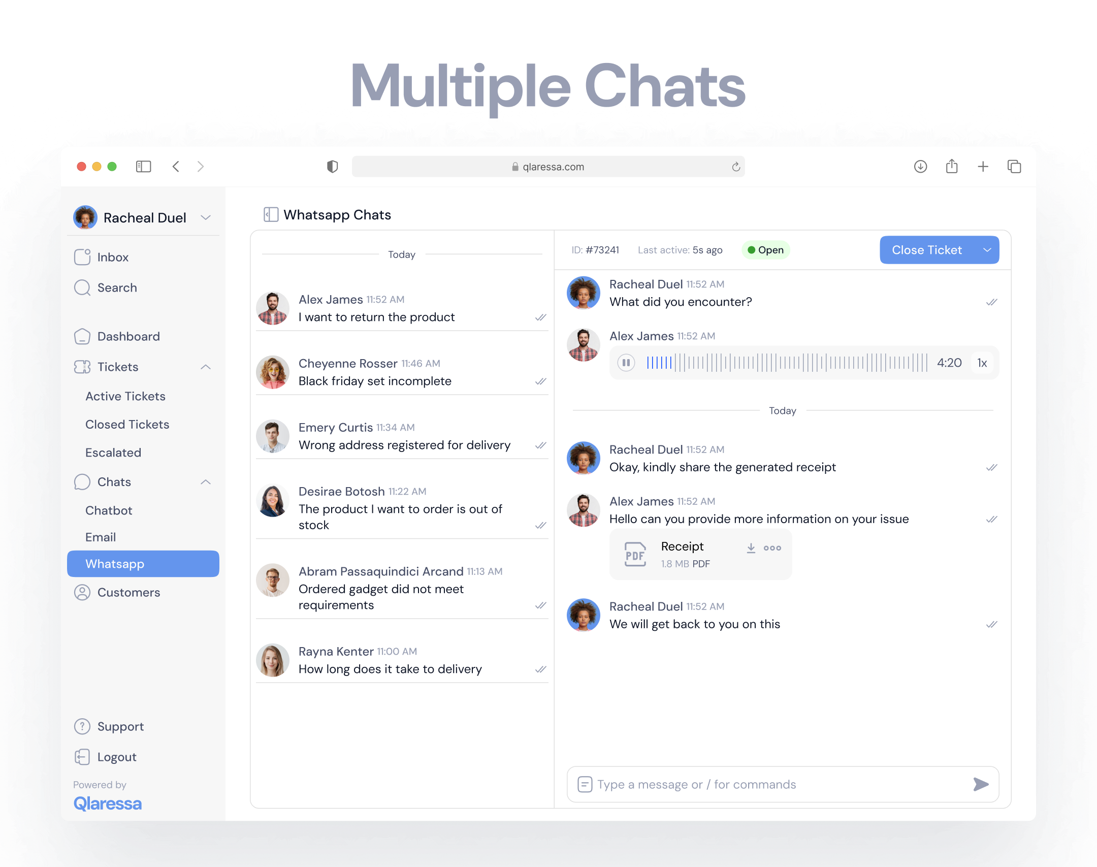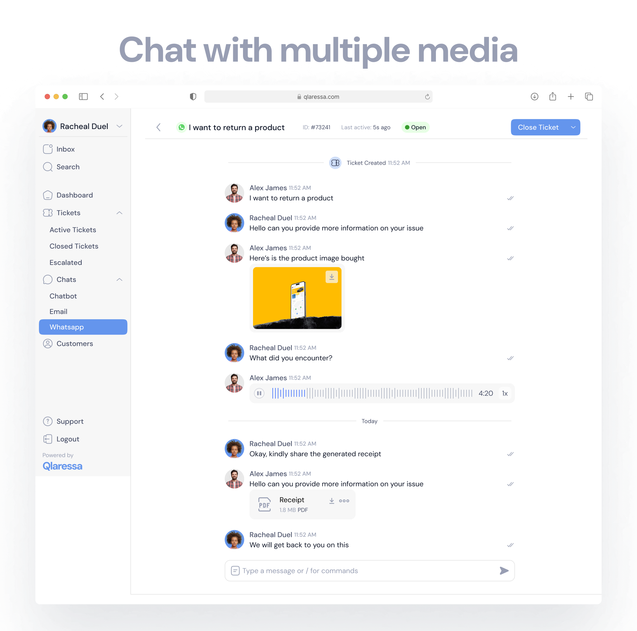 Qlaressa consolidates customer data from various touchpoints, providing a unified view that empowers teams to understand customer behavior comprehensively.Omni-channel communication