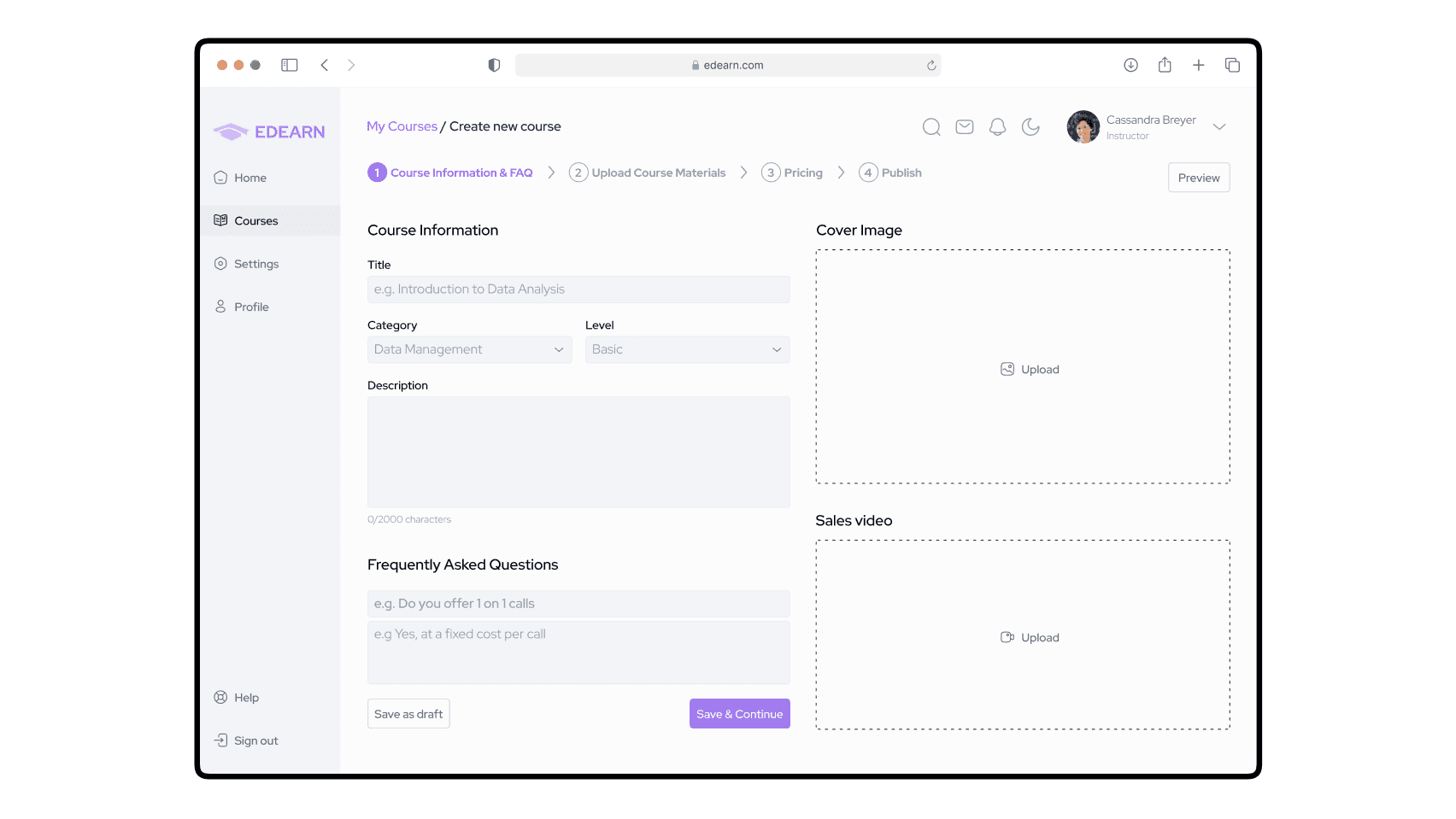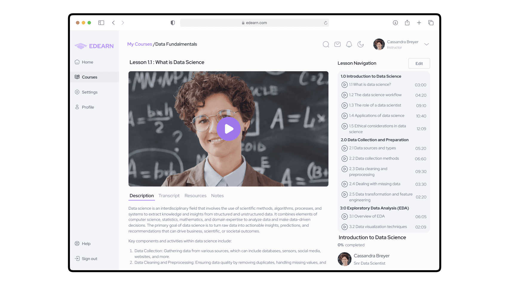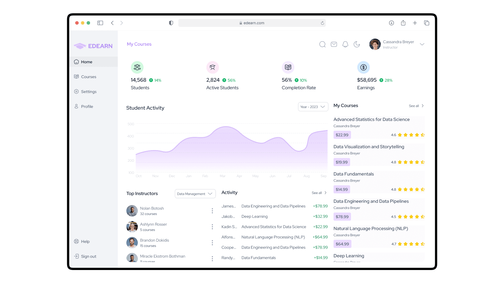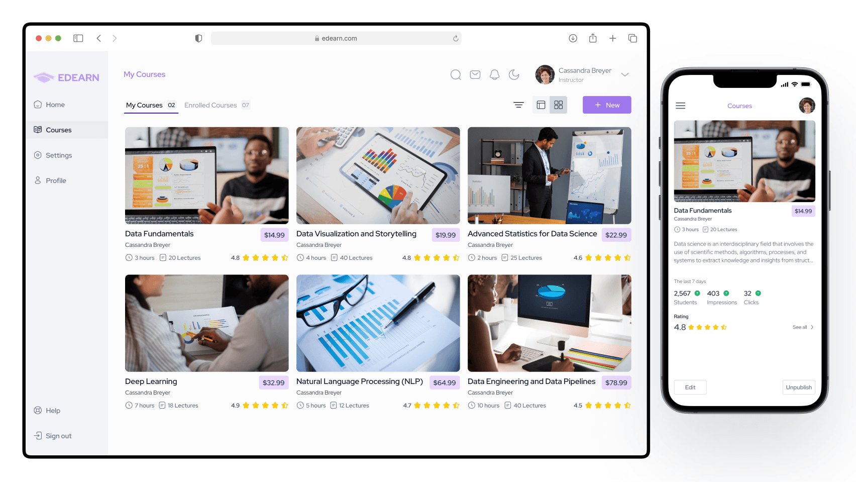 Edearn is an online education platform built for instructors and students to create, sell, and access courses.