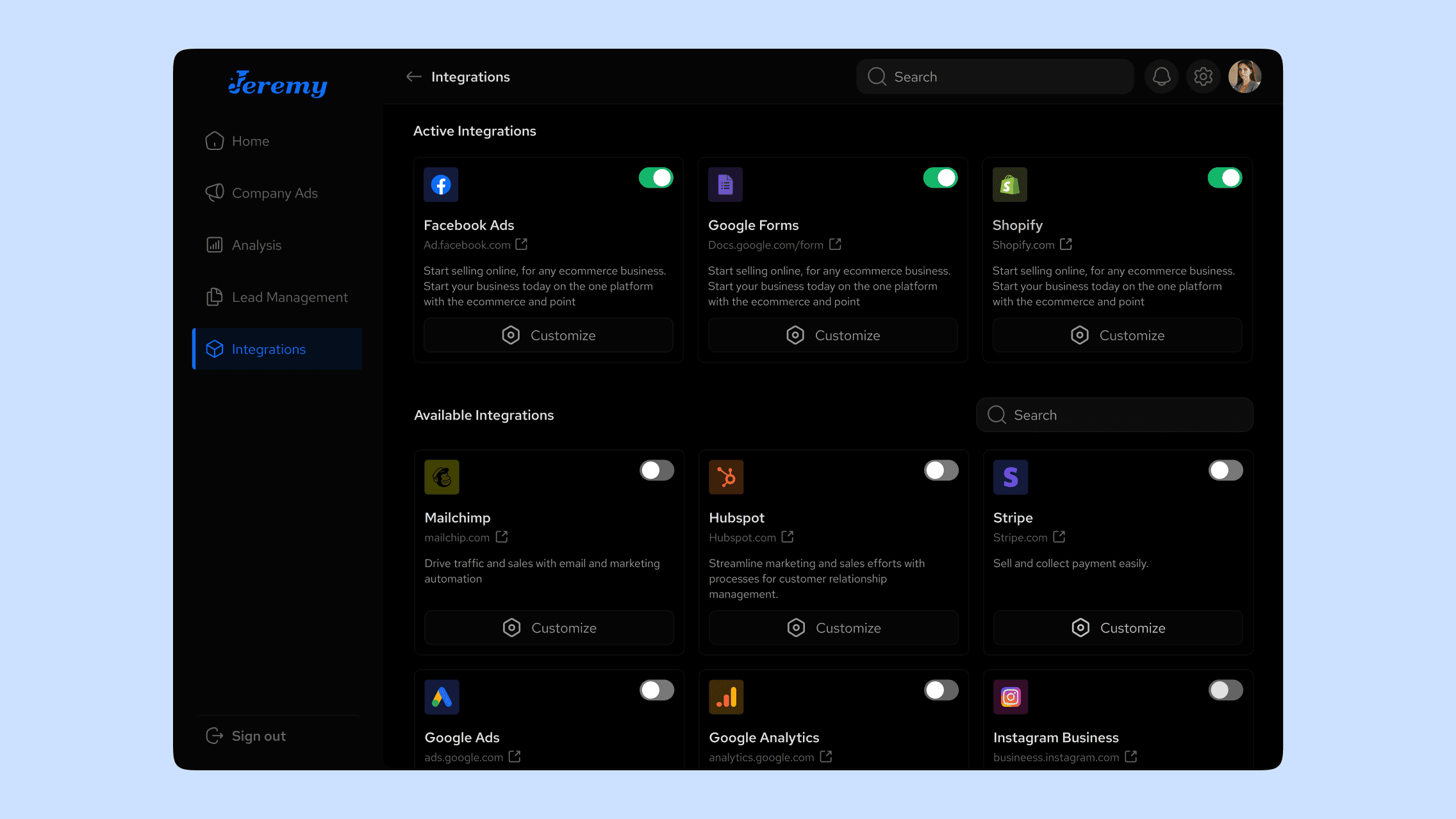 API & Custom Integrations: For enterprise users or power marketers, Jeremy offers API access for custom automation or data feeds.