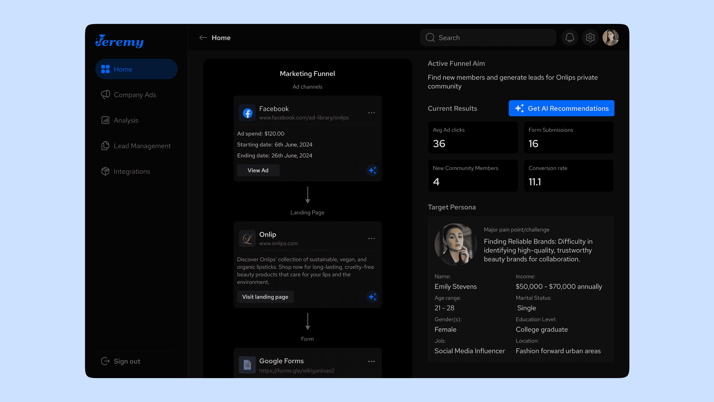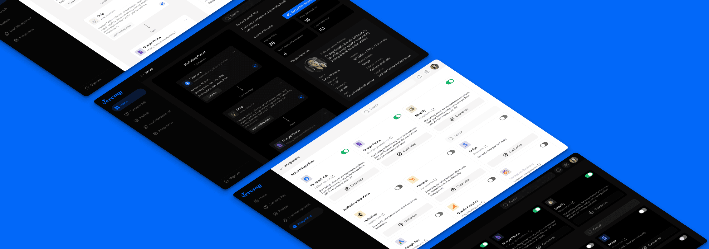 From launch strategy to funnel optimization, Jeremy simplifies every stage of the marketing journey. It combines data-driven insights, customizable dashboards, and campaign automation to offer a unified workspace for marketing teams. Designed for both web and mobile, Jeremy is available in light and dark modes to fit user preferences.